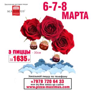 3 пиццы по 30 см, ветчина + моцарелла, куриное филе + моцарелла, салями + моцарелла * акция действует с понедельника по четверг